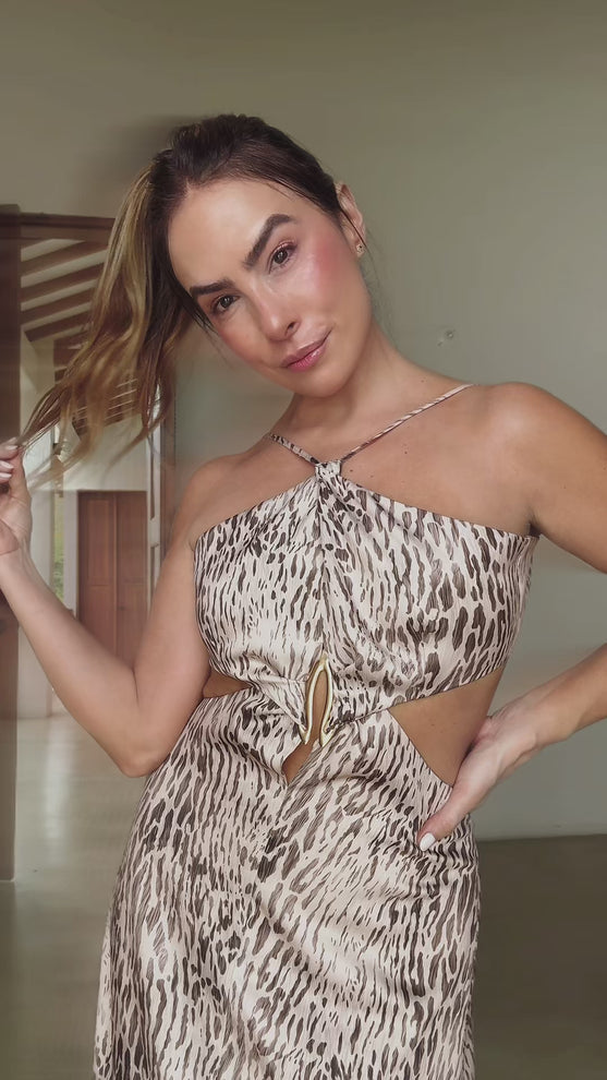 LUCRECIA — Vestido largo animal print en semi brillo.