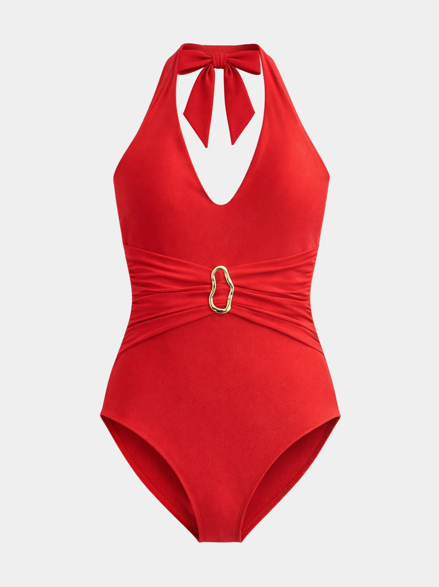 ORA Vestido de baño entero — Elegancia que resalta con luz propia Una silueta que abraza con sofisticación y define tu figura con seguridad. Hecho en tela con brillo sutil que capta la luz de forma elegante. Detalle de hebilla dorada resistente al agua de mar y cloro. Completamente forrado para una mayor cobertura y comodidad. Amarre al cuello que permite varias formas de uso y ajuste personalizado.