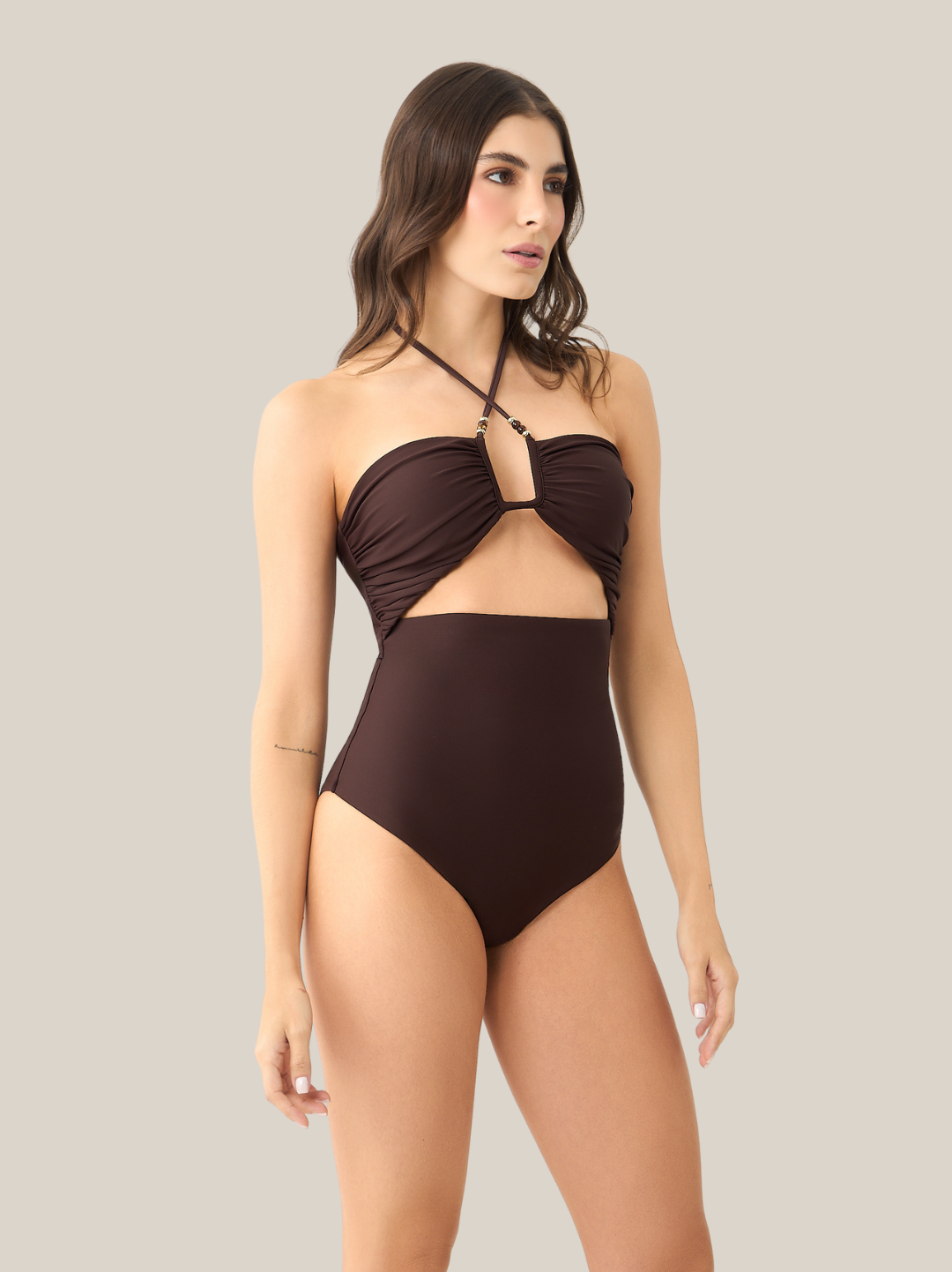 Escote con detalle central y cut-out que revela sutilmente, sin perder elegancia.
